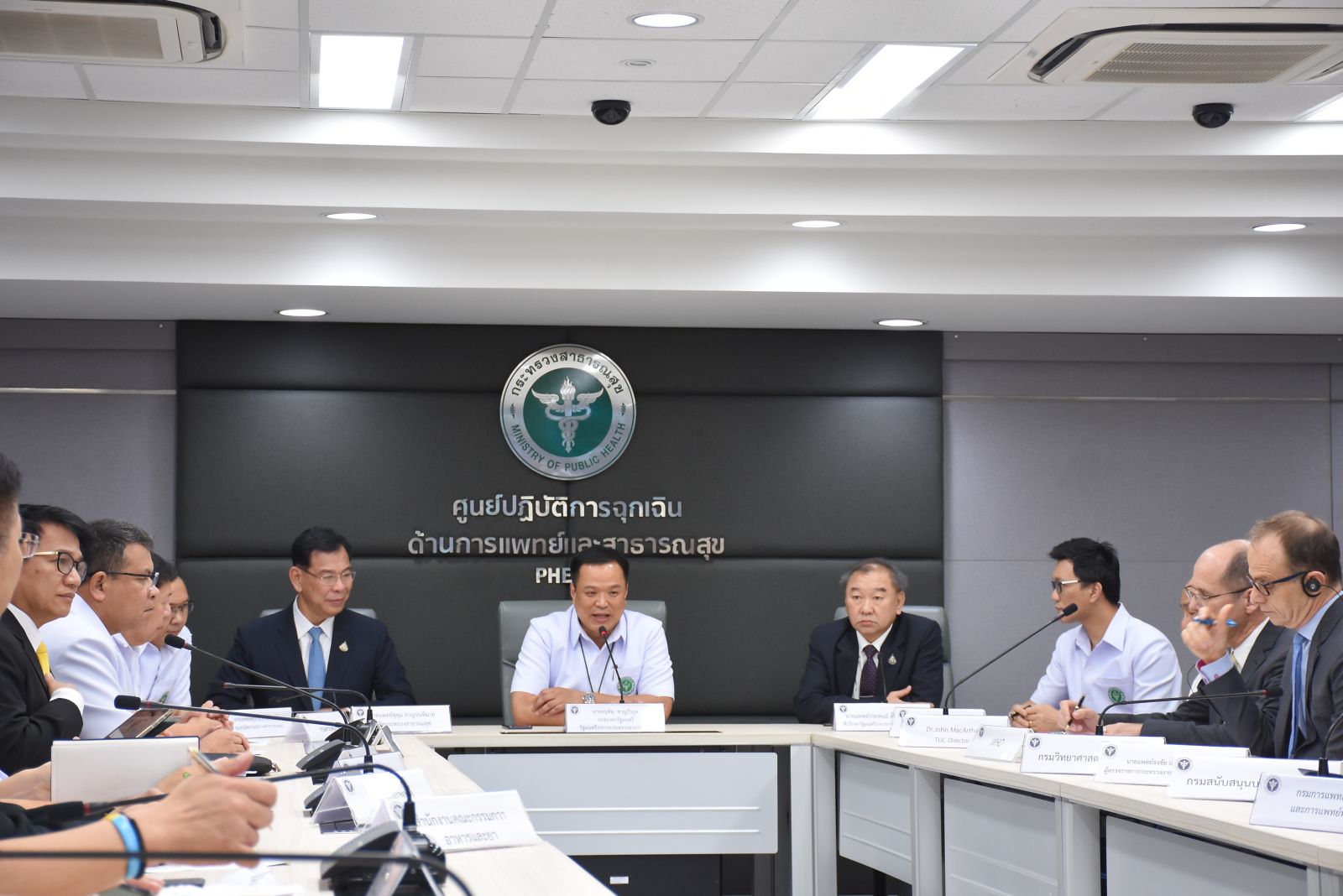 วันนี้ (22 มกราคม 2563) ที่กระทรวงสาธารณสุข จ.นนทบุรี นายอนุทิน ชาญวีรกูล รองนายกรัฐมนตรีและรัฐมนตรีว่าการกระทรวงสาธารณสุข พร้อมด้วยนายแพทย์สุขุม กาญจนพิมาย ปลัดกระทรวงสาธารณสุข ประชุมทางไกล กรณี “โรคปอดอักเสบจากเชื้อไวรัสโคโรนาสายพันธุ์ใหม่ 2019” กับนายแพทย์สาธารณสุขจังหวัดและผู้อำนวยการโรงพยาบาลทั่วประเทศ